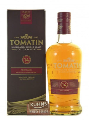 Tomatin 14 Jahre reifte zuerst in ehemaligen Bourbonfässern und erhielt im Anschluss eine Nachreifung in Portweinfässern. Abgefüllt mit 46 vol. % Alkohol, nicht kältefiltriert.