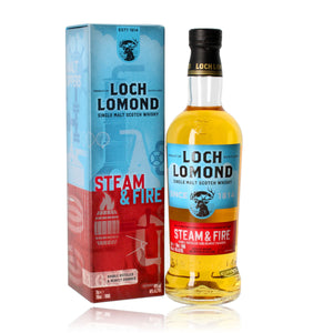 Loch Lomond Steam & Fire reifte zuerst in First Fill Bourbon Barrels und Refill American Oak Fässer, erhielt im Anschluss eine Nachreifung in First Fill heavily recharred American Oak Barrels . Abgefüllt mit 46 vol. % Alkohol, nicht kältefiltriert.