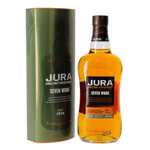 Jura Seven Wood first matured in former bourbon casks for an undefined period of time and then received a post-maturation in various fresh French oak barrels (Virgin Oak). Bottled at 42% ABV. Alcohol.