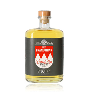 The experienced master distillers from both distilleries each selected an exclusive individual barrel for the Franconian Vatted Malt Whiskey. Georg Kugler, founder and master distiller of Elch-Whisky, selected an eight-year-old peated single malt whiskey that was allowed to mature in a former Bourbon Tennessee Whiskey barrel from Jack Daniel's. The St. Kilian Single Malt Whiskey matured for four years in a former barrique barrel from the Bürgstadt winery Fürst, which was initially filled with Pinot Noir red wine and then with cherry brandy for 20 years. This remarkable blended malt whiskey captures the soul of Franconia in every bottle.