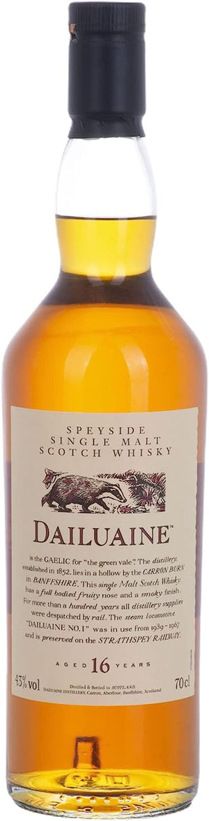 Dailuaine 16 Jahre stammt aus der schottischen Speyside und reifte 16 Jahre in ehemaligen Sherryfässern. Abgefüllt mit 43 vol. % alkoholia.